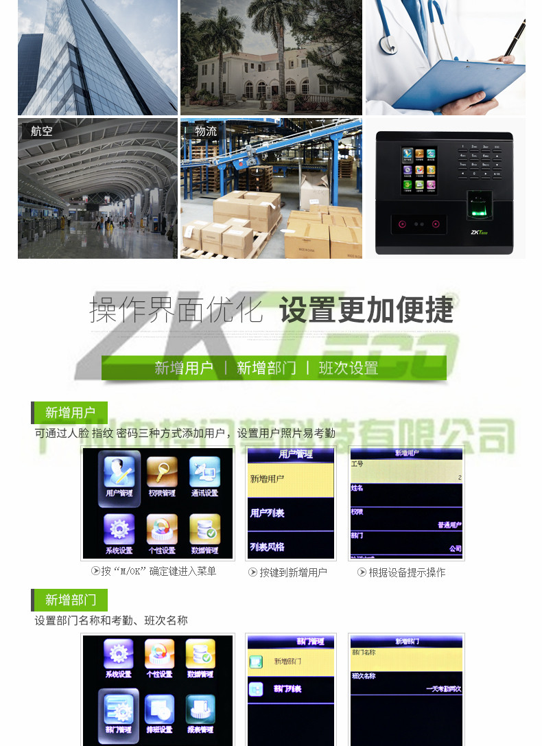 指紋打卡機UF200產(chǎn)品介紹: 1.歐式流線型設(shè)計,觸摸與微動按鍵并存,面部、密碼、指紋多種識別方式為一體,高品質(zhì)、多功能的完美體現(xiàn)。 2.面部容量200張,指紋容量400枚。 3.TCP/IP、U盤通訊方式。 4.自助式考勤功能。