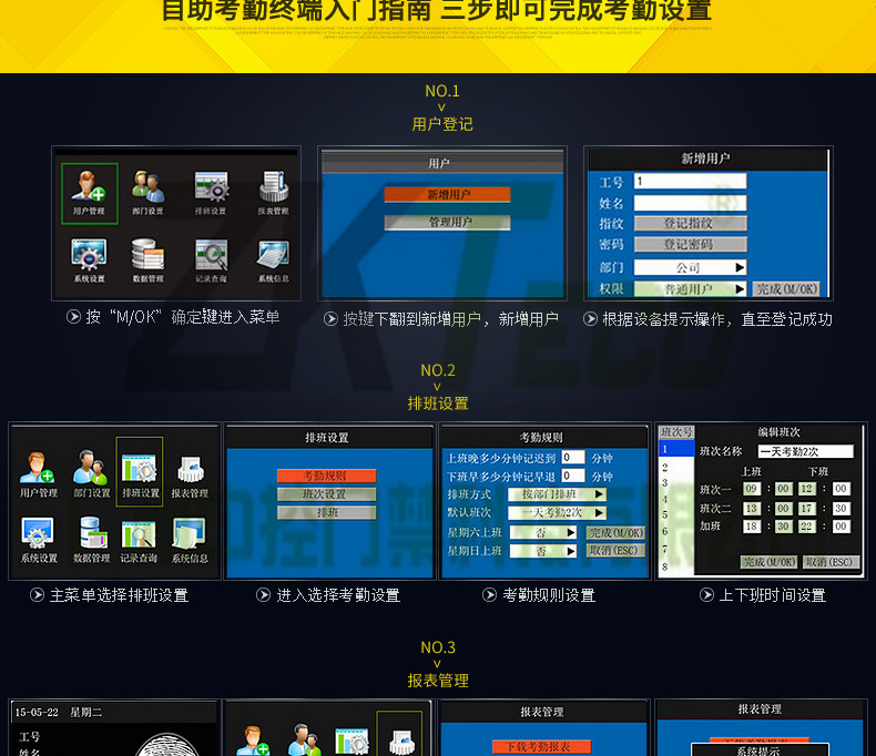 U盤下載:用戶可通過U盤下載考勤數(shù)據(jù)及上傳自定義背景圖片;