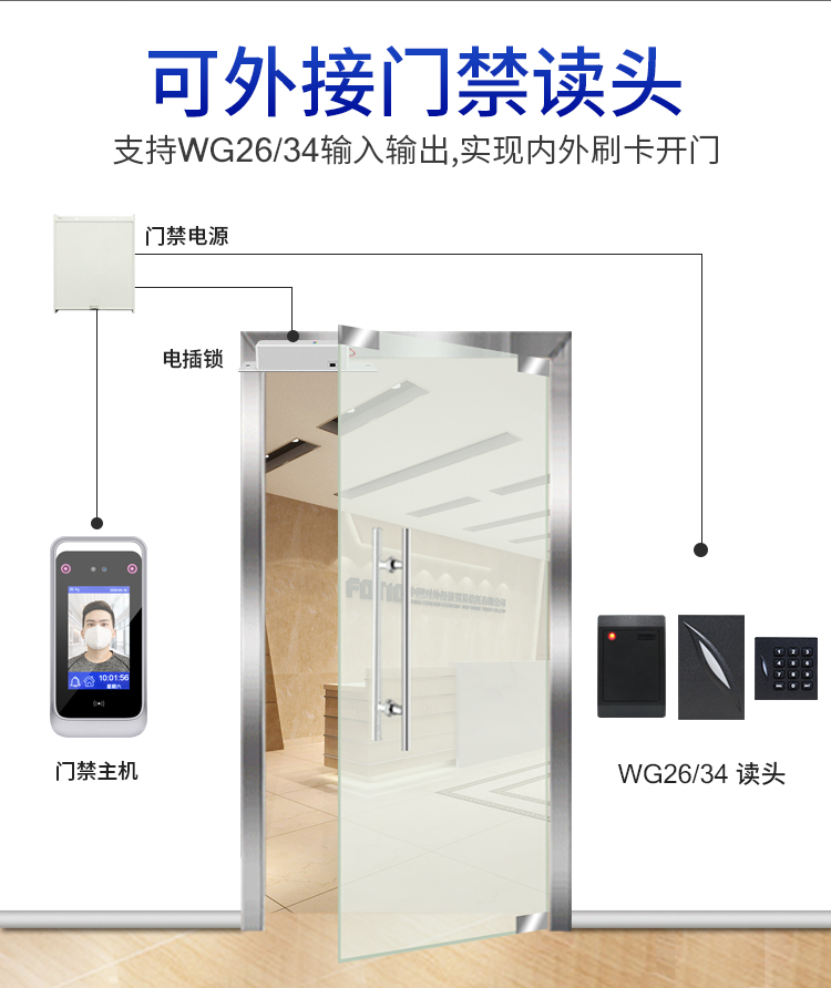 動態人臉識別考勤門禁一體機 面部簽到打卡機 門禁系統套裝辦公室木門鐵門玻璃門磁力鎖電插鎖